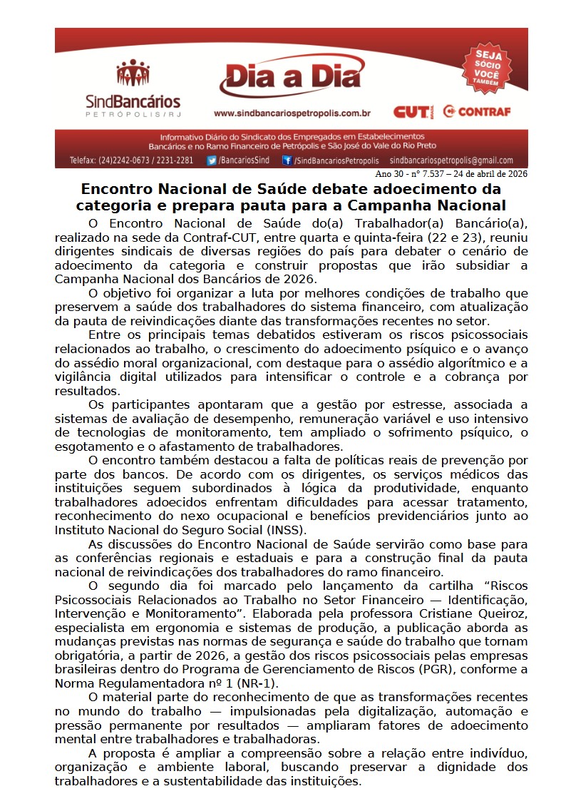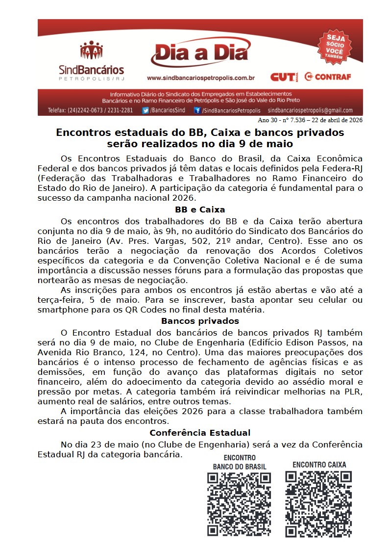 22/04/2026 - DIA A DIA (Encontros estaduais do BB, Caixa e bancos privados)