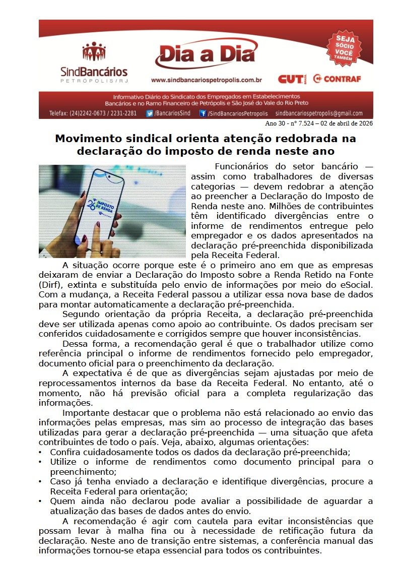 02/04/2026 - DIA A DIA (Movimento sindical orienta atenção redobrada na declaração do imposto de renda neste ano)
