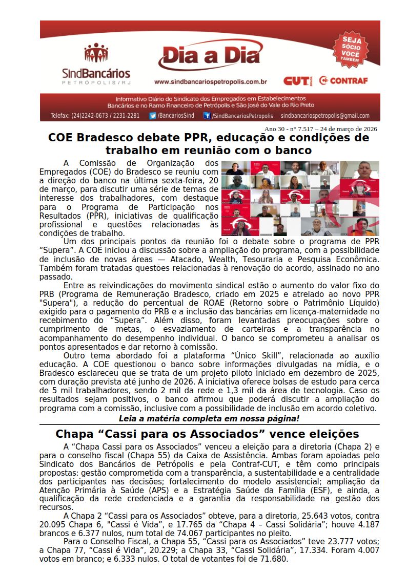 24/03/2026 - DIA A DIA (COE Bradesco debate PPR, educação e condições de trabalho em reunião com o banco)