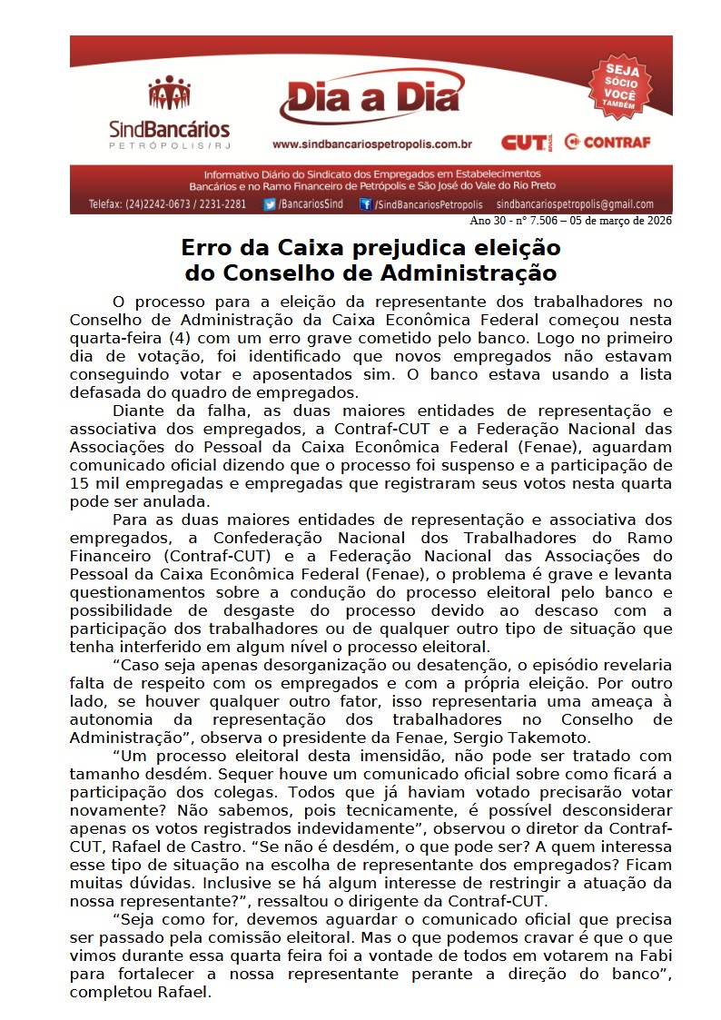 05/03/2026 - DIA A DIA (Erro da Caixa prejudica eleição do Conselho de Administração)