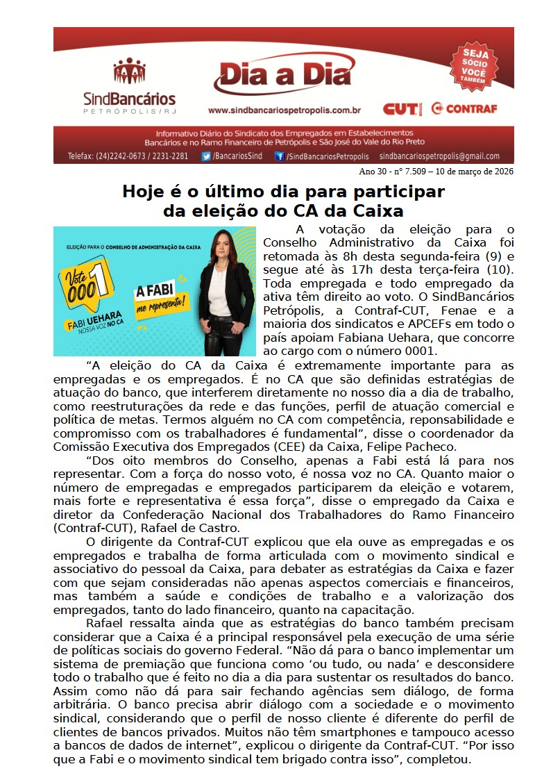 09/03/2026 - DIA A DIA (Dia Internacional das Mulheres / Edital)