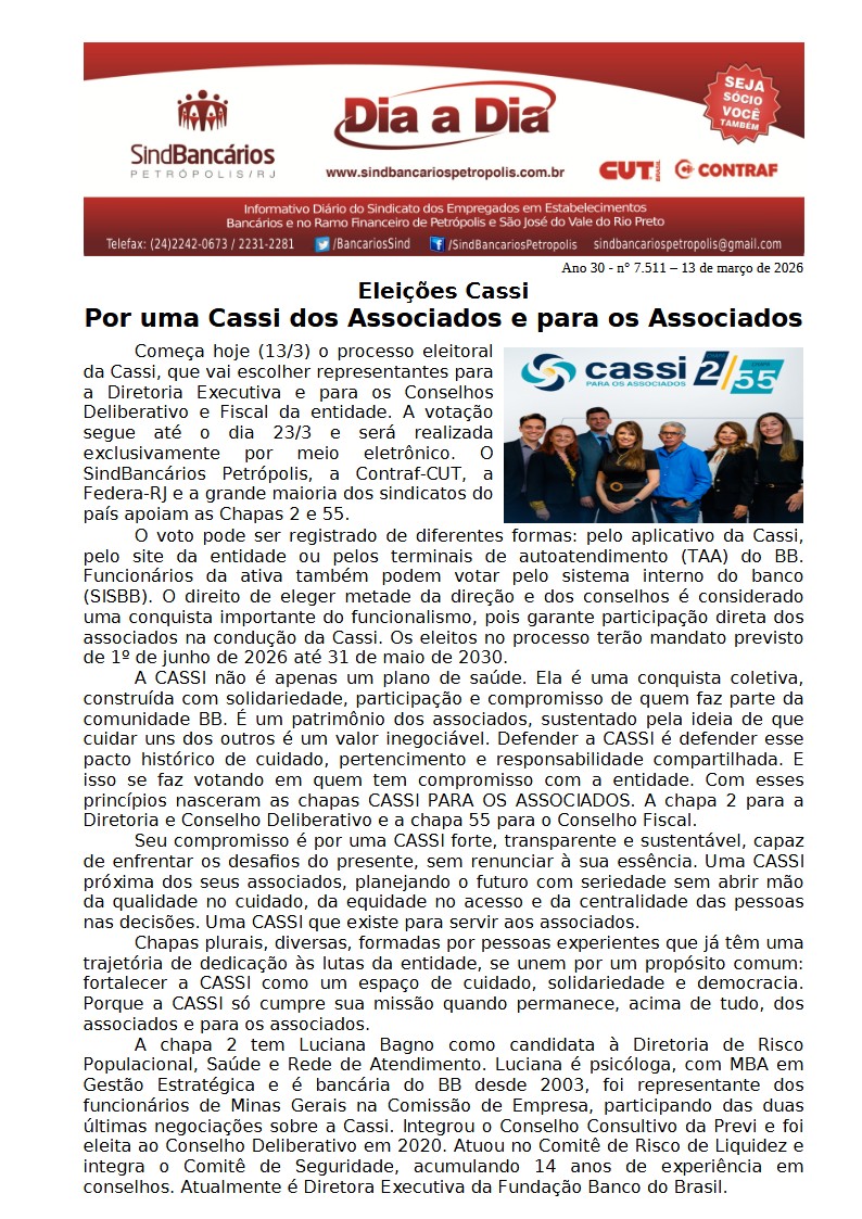 13/03/2026 - DIA A DIA (Eleições Cassi)