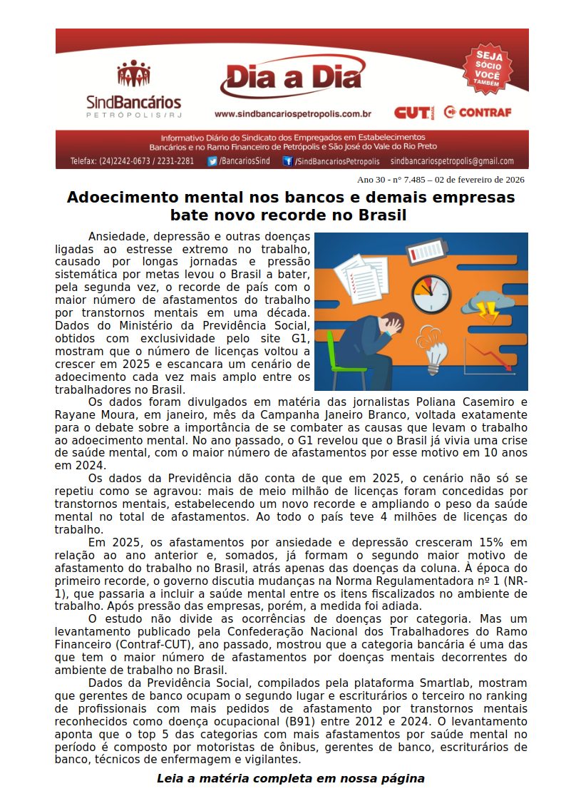04/02/2026 - DIA A DIA (Sindicato e Contraf-CUT apoiam as chapas 2 e 55 nas Eleições Cassi 2026)