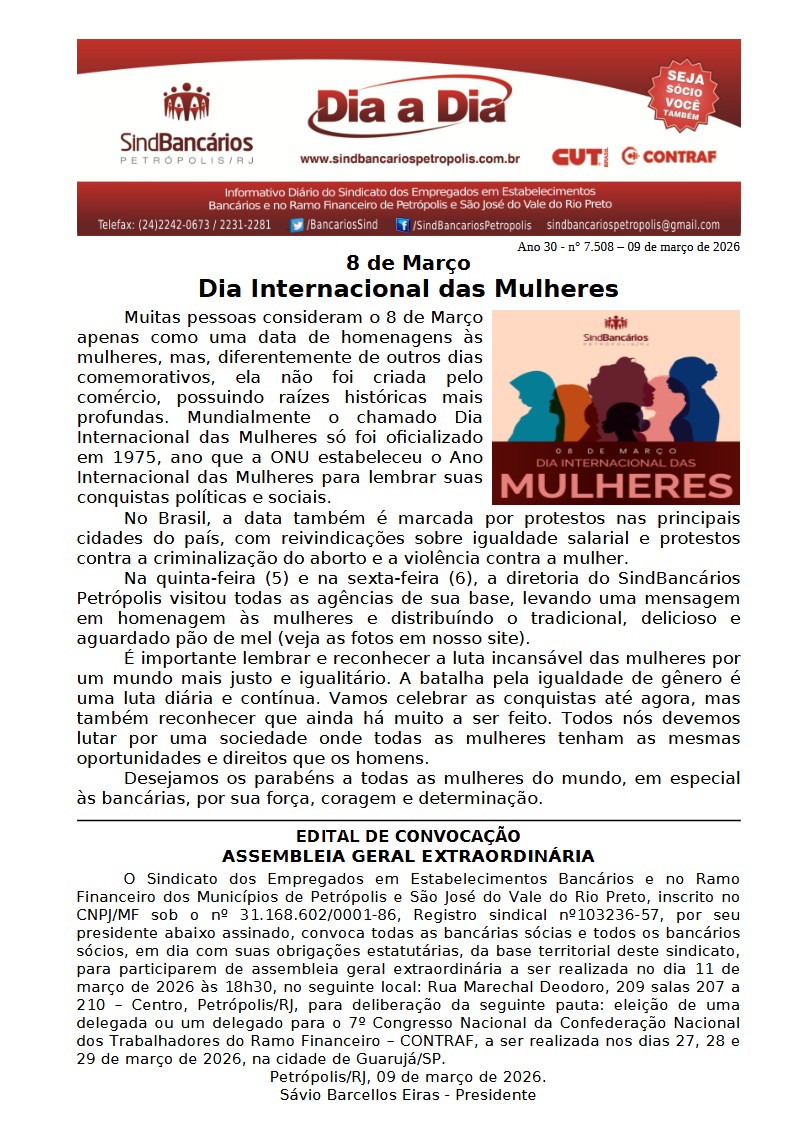 09/03/2026 - DIA A DIA (Dia Internacional das Mulheres / Edital)