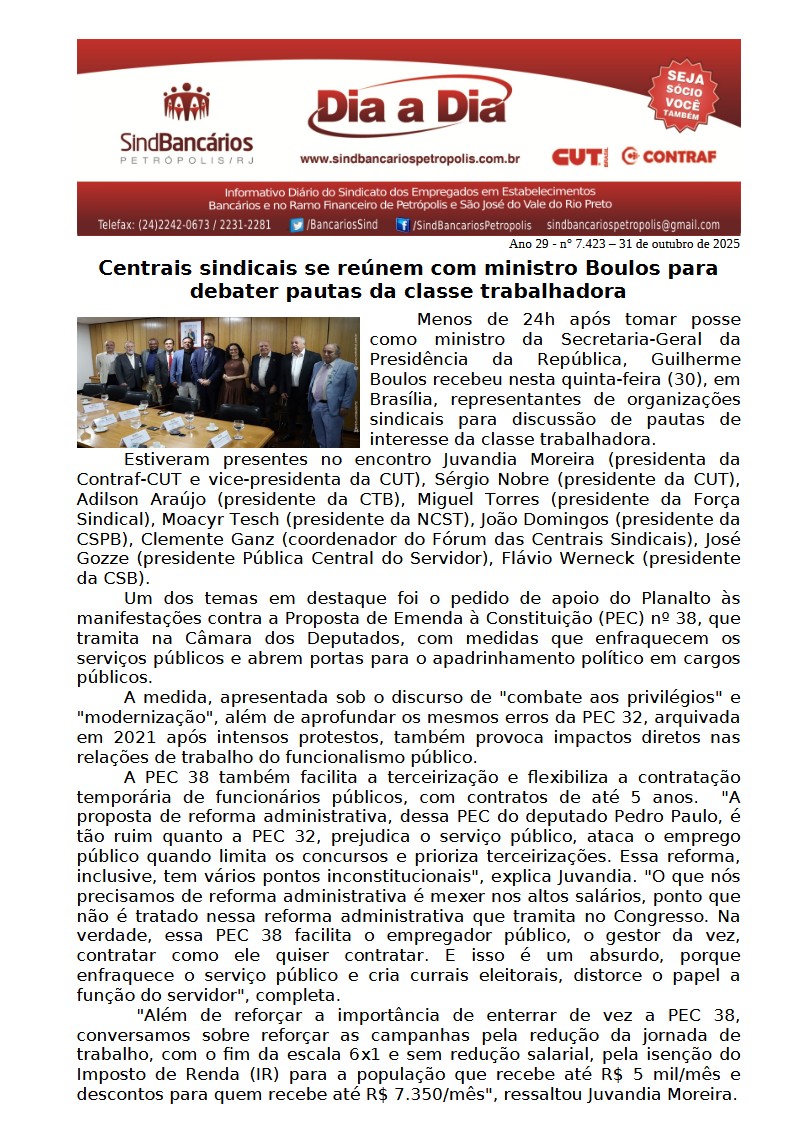 31/10/2025 - DIA A DIa (Centrais sindicais se reúnem com ministro Boulos para debater pautas da classe trabalhadora)