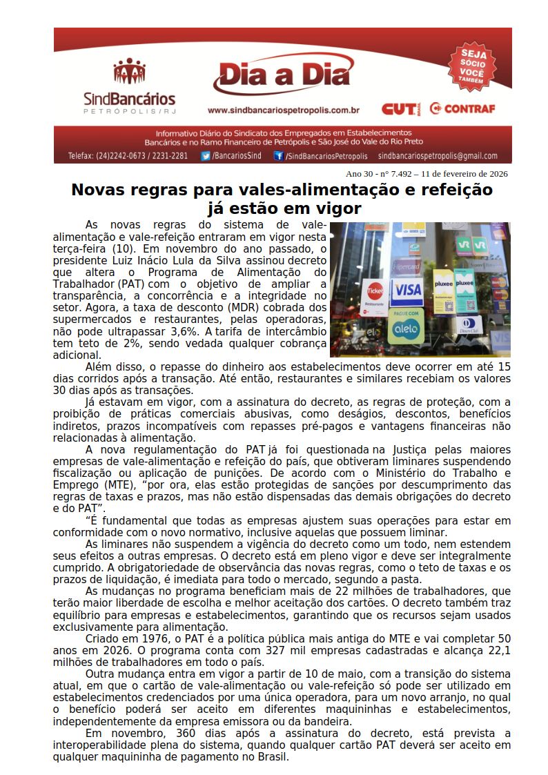 11/02/2026 - DIA A DIA (Novas regras para vales-alimentação e refeição já estão em vigor)