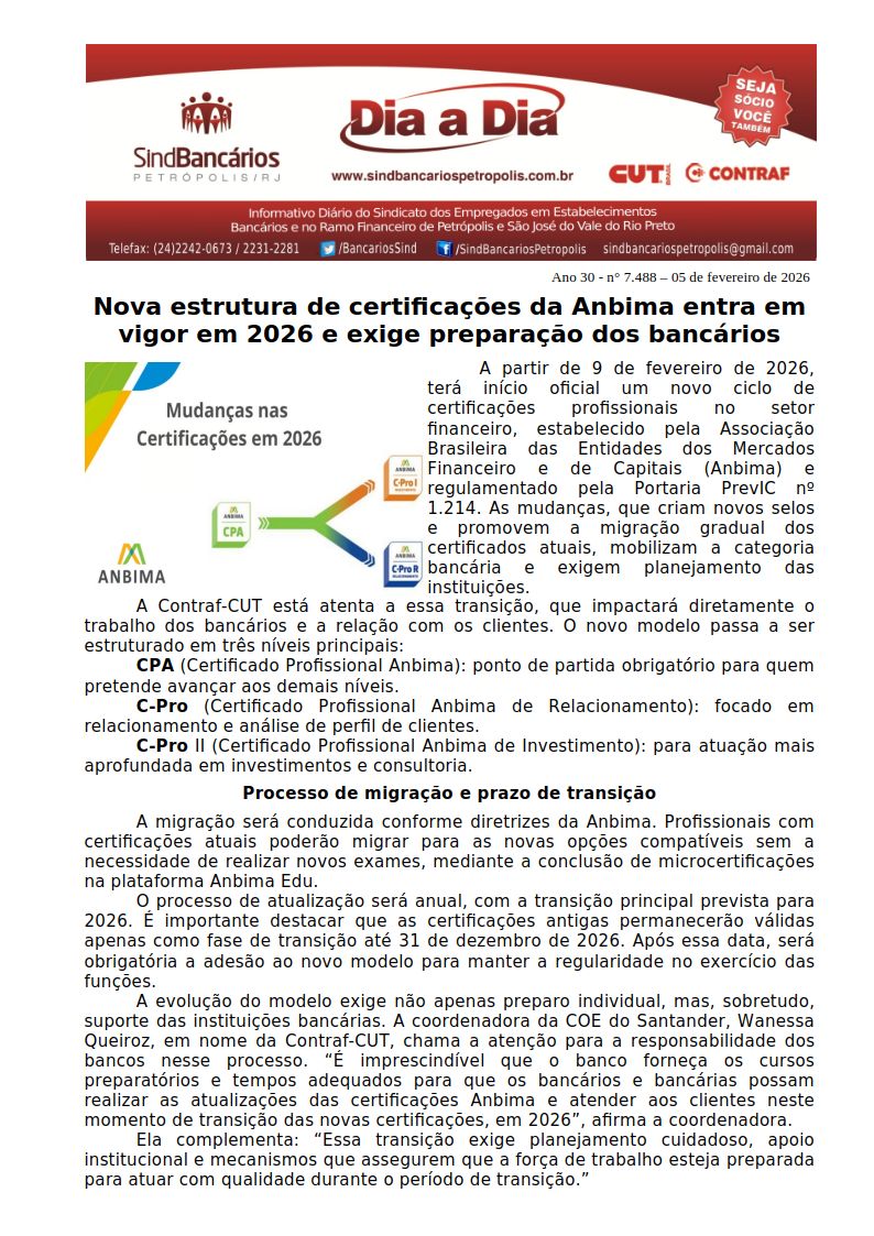 05/02/2026 - DIA A DIA (Nova estrutura de certificações da Anbima entra em vigor em 2026 e exige preparação dos bancários)