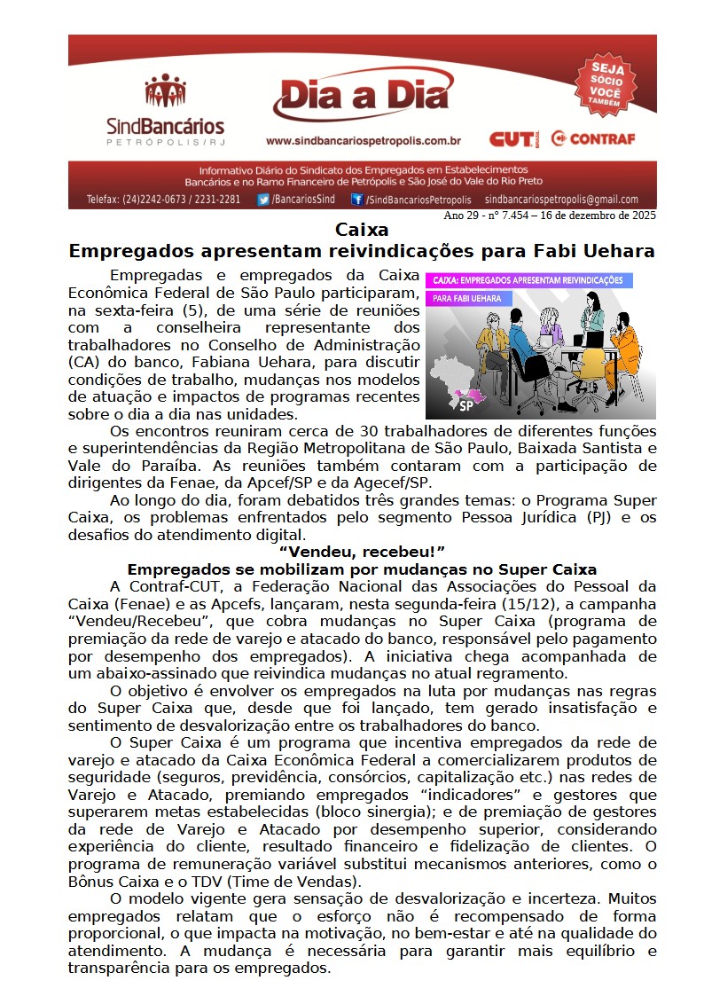 16/12/2025 - DIA A DIA (Caixa: Empregados apresentam reivindicações para Fabi Uehara)
