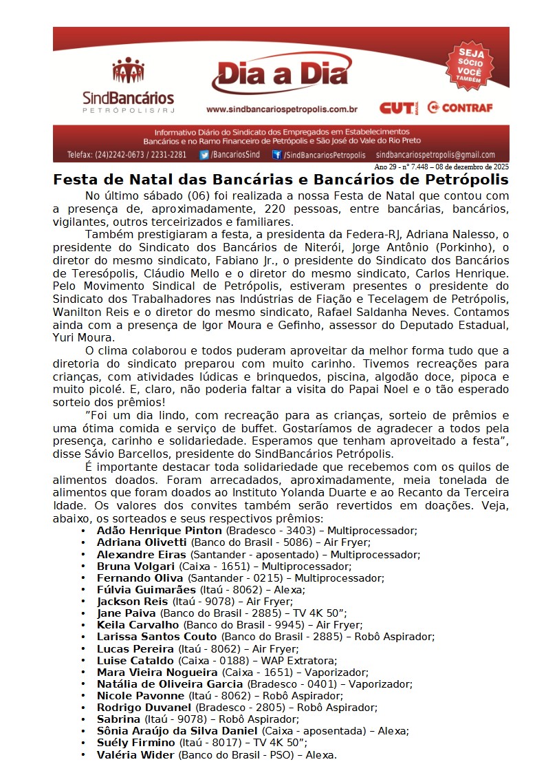 08/12/2025 - DIA A DIA (Festa de Natal das Bancárias e Bancários de Petrópolis)